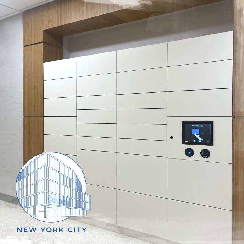 At Columbia University, they have installed a package parcel locker bank. These lockers are unique with multiple-sized openings and are integrated with a leading software provider of mail center workflows. This system provides students with a faster, more reliable, and convenient solution to get their packages. Once the students receive an email saying their package is ready for pickup, they can access the locker after presenting their student ID, QR code, or a PIN at the centralized touchscreen and reader. The locker door will pop open, they grab their package and shut the door, ready for the next item to be delivered in that locker opening.