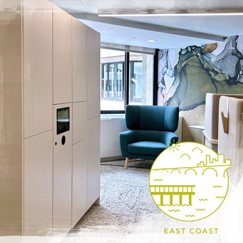 We are hanging out on the East Coast for this recent installation! Taking a hybrid approach to work with unassigned desking the office becomes transient and unpredictable. This organization has strategically placed small locker banks with various-sized openings throughout their facility.